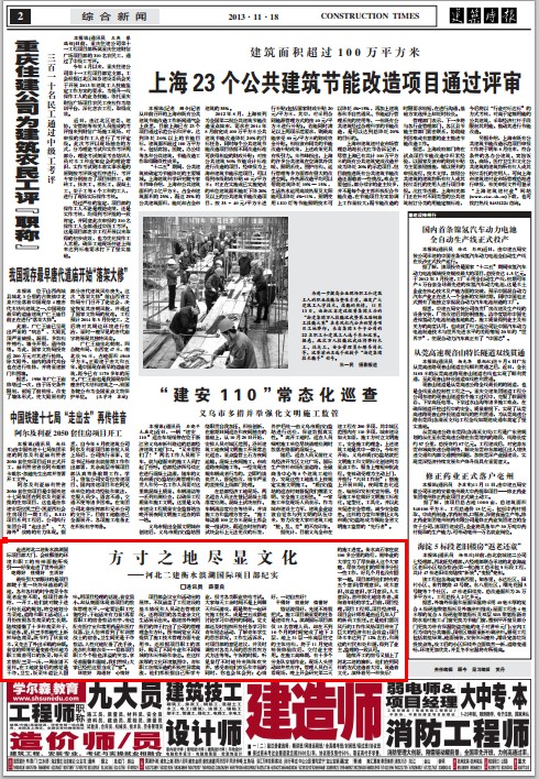 《建筑时报》报道我公司项目文化建设情况 来源: 修改时间:2013.11.25 浏览:6854 《建筑时报》报道我公司项目文化建设 2013年11月18日,《建筑时报》第2版以《方寸之地尽显文化》为题,报道我公司项目文化建设、职工小家建设事迹。 河北二建:上一条 返回列表 下一条