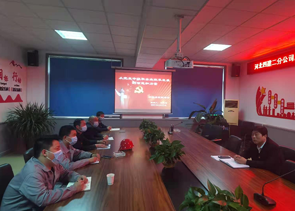 “我们党的历史,就是一部实事求是、理论联系实际,不断推进马克思主义中国化的历史。我们党是靠实事求是起家和兴旺发展起来的……”4月12日下午,二分公司党总支书记孙立锋正在井陉县医院项目部进行党史学习教育宣讲。
