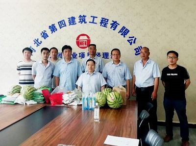 8月11日上午,公司党委副书记、工会主席李怀生到二分公司九洲项目部,对炎炎夏日奋战在一线的全体职工进行慰问,二分公司党总支部书记、工会主席孙立锋一同参加。