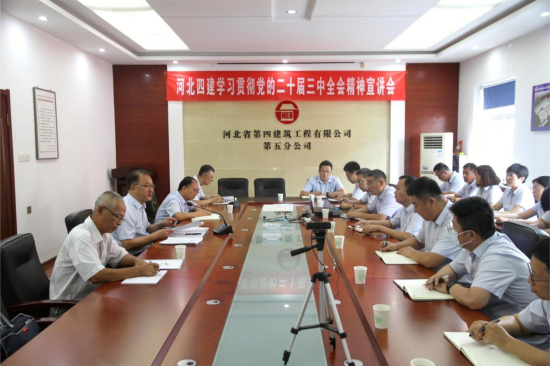董富强强调,要全力以赴抓好全会精神的学习贯彻工作,一要笃信提站位,充分认识全会的重大意义,把思想和行动统一到党中央决策部署上来,要坚持和落实“两个毫不动摇”,以实际行动捍卫“两个确立”,坚决做到“两个维护”。二要笃学悟精神,采取多种形式抓好全会精神的学习,加强统筹协调和督促指导,做到学深悟透、融会贯通。三要笃行齐奋进,以全会精神为指引,增强机遇意识,坚定信心,全力做好市场开发、风险防控、项目管理等工作,推进公司发展迈出新步伐,为奋力谱写中国式现代化建设河北篇章作出河北四建新贡献。