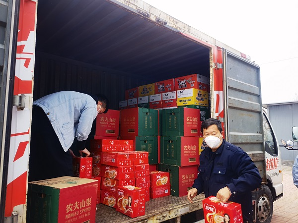 3月20日,了解到当地抗疫工作者吃饭不方便、部分社区消毒液供应紧张的情况时,分公司书记立即安排项目人员紧急采购抗疫所需物资、联系运输车辆,迅速开展支援行动。经过一天的紧张准备,3月21日上午,满载方便面50件、八宝粥50件、矿泉水50件、84消毒液20件物资的车辆,从项目驻地驶往汊沽港镇人民政府。